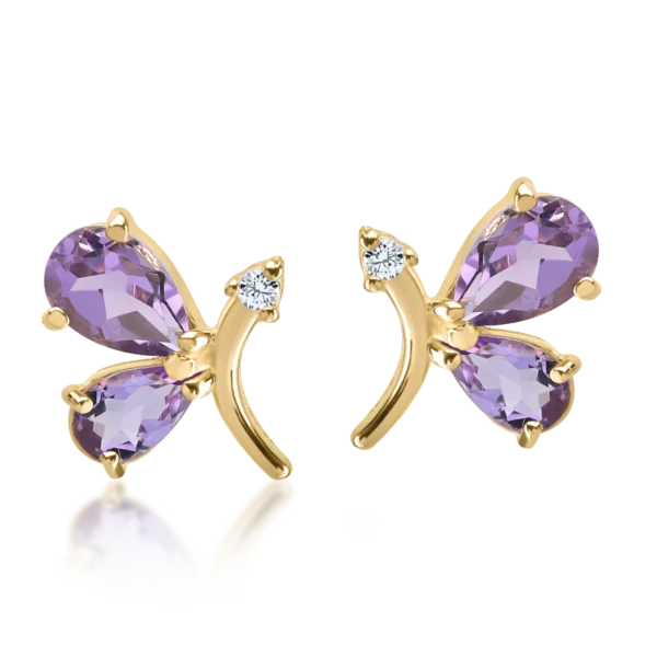 Cercei din aur galben cu ametiste pear de 1.7ct si zirconii