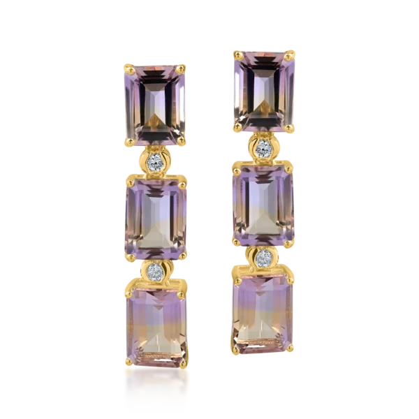 Cercei din aur galben cu ametrine octogonale de 6.29ct si diamante de 0.077ct