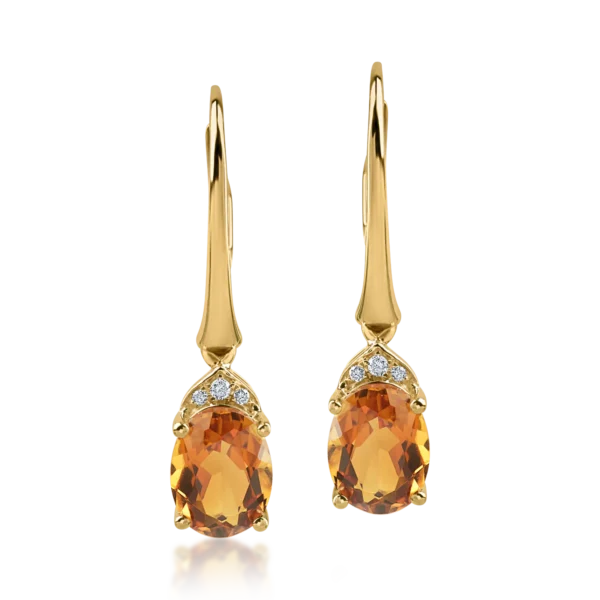 Cercei din aur galben cu citrine ovale de 2.29ct si diamante de 0.03ct