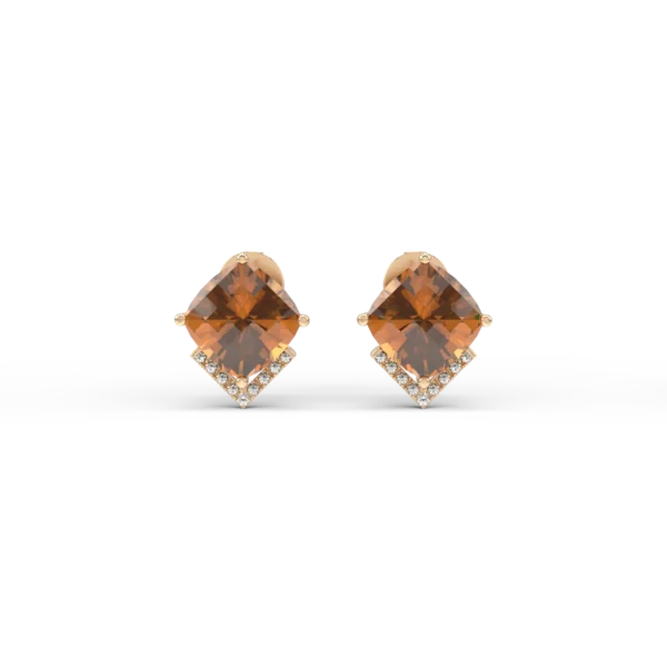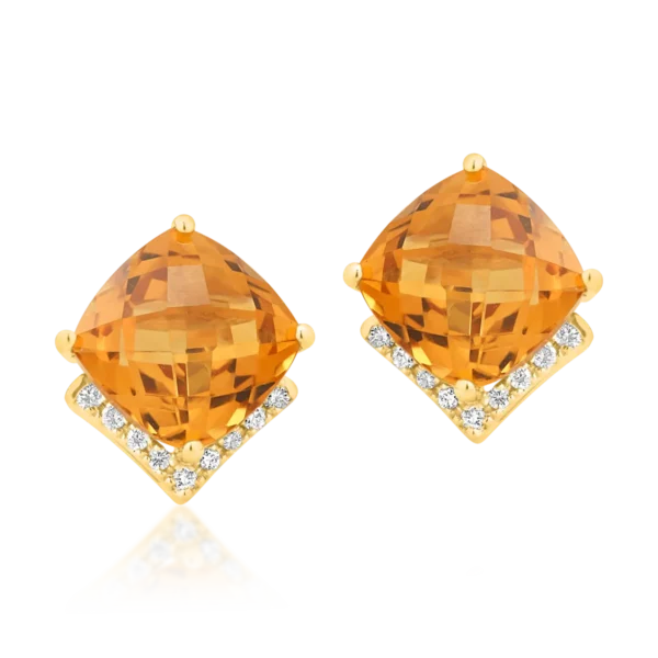 Cercei din aur galben cu citrine cushion de 5ct si diamante de 0.1ct