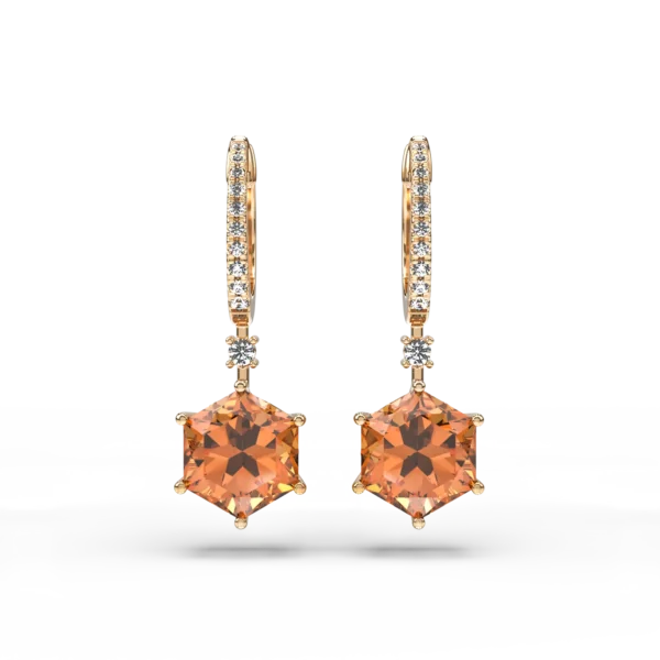 Cercei din aur galben cu ametrine octogonale de 9.3ct si diamante de 0.1ct