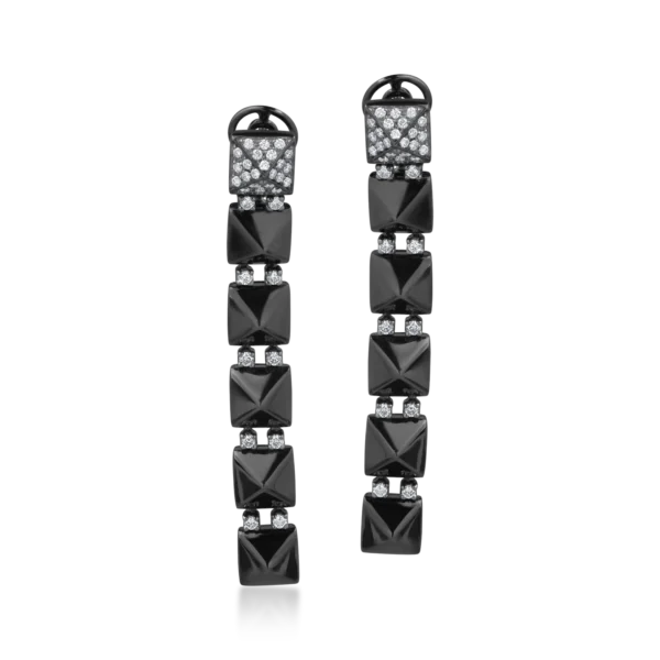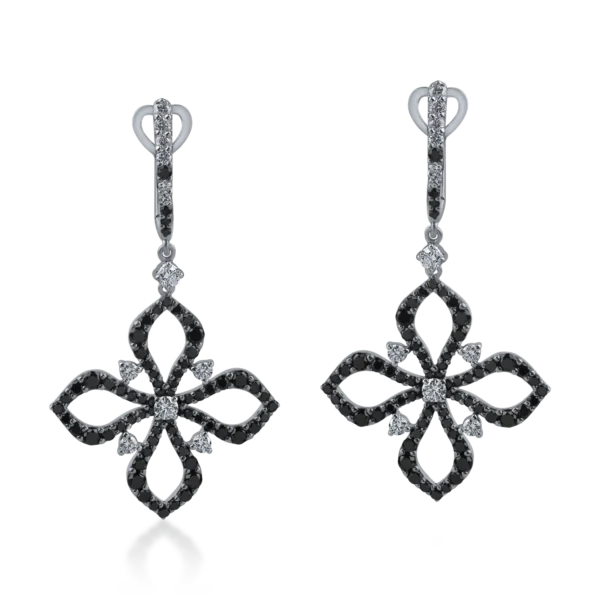 Cercei din aur negru cu diamante negre de 0.54ct si diamante transparente de 0.02ct