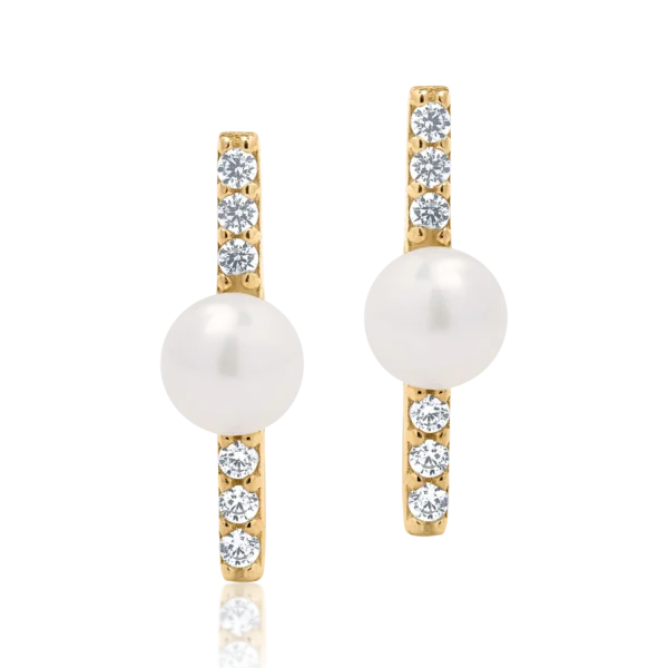 Cercei din aur galben cu zirconii si perle de cultura de 1.2ct