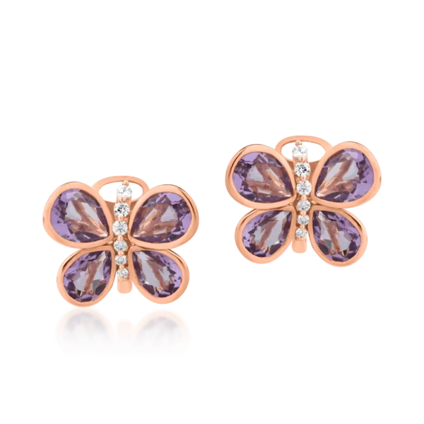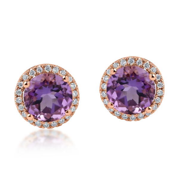 Cercei din aur roz cu ametiste de 2.5ct si diamante de 0.2ct