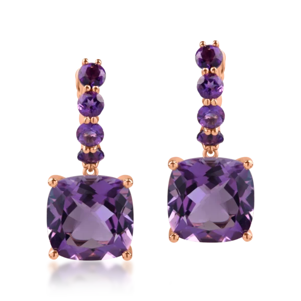 Cercei din aur roz cu ametiste cushion si rotunde de 8.3ct