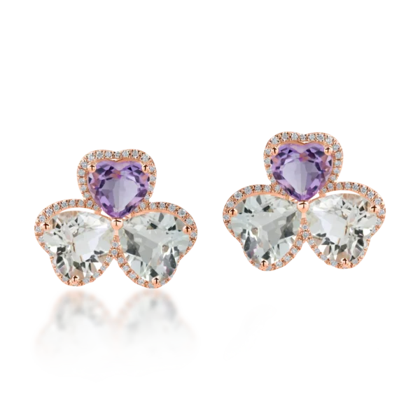 Cercei din aur roz cu ametiste heart de 8.5ct si diamante de 0.3ct