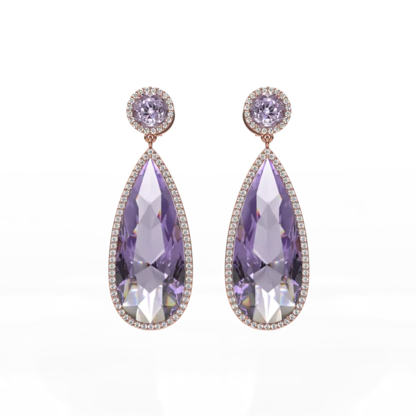 Cercei din aur roz cu ametiste pear de 13.85ct si diamante de 0.571ct