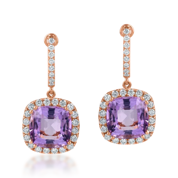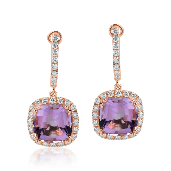 Cercei din aur roz cu ametiste rectangulare si diamante de 5.1ct