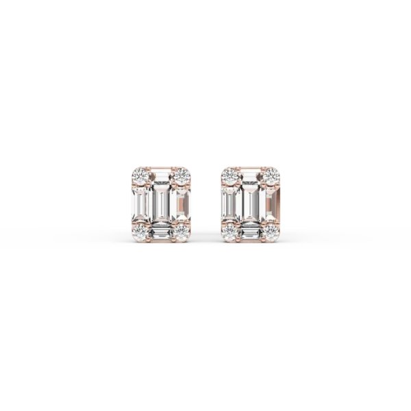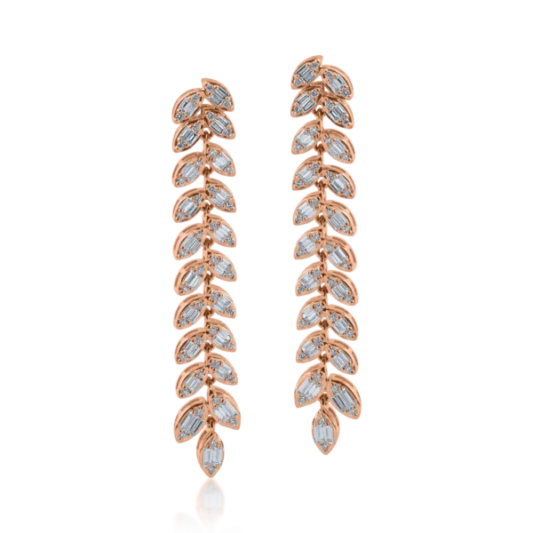 Cercei din aur roz cu diamante baguette si round de 1.4ct