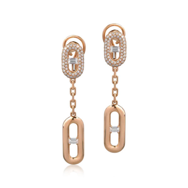 Cercei din aur roz cu diamante baguette si rotunde de 0.6ct