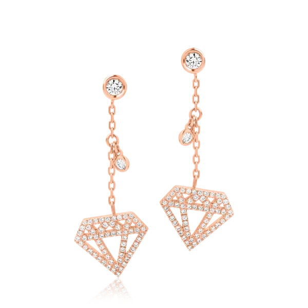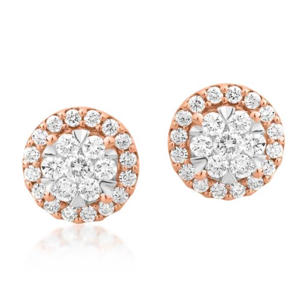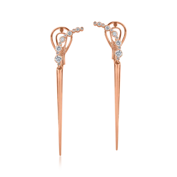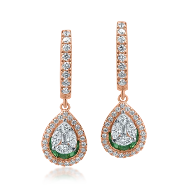 Cercei din aur roz cu diamante de 1.05ct si smaralde de 0.5ct