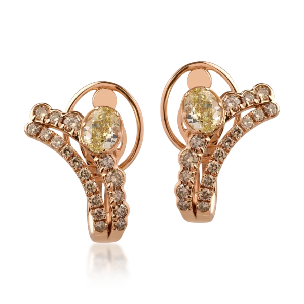 Cercei din aur roz cu diamante fancy galbene ovale de 1.63ct si diamante maro round de 1.1ct