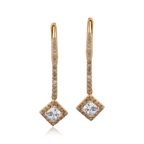 Cercei din aur roz cu diamante incolore de 1.22ct si diamante maro princess si round de 0.45ct