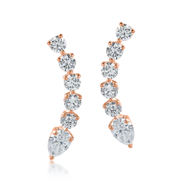 Cercei din aur roz cu diamante pear si round de 3.43ct