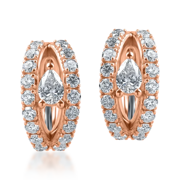 Cercei din aur roz cu diamante pear si round de 1.55ct