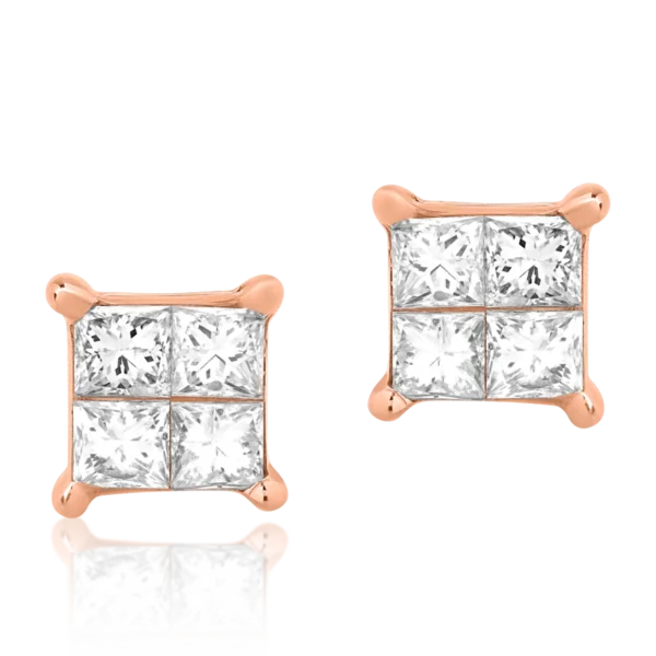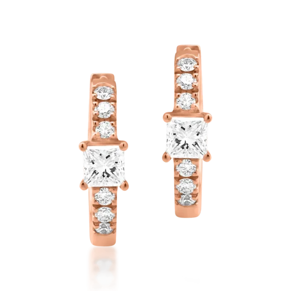 Cercei din aur roz cu diamante princess si rotunde de 0.19ct