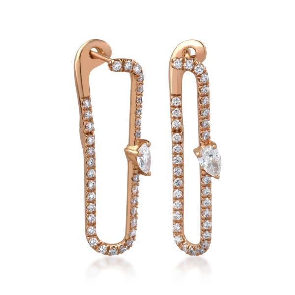 Cercei din aur roz cu diamante pear si rotunde de 0.9ct