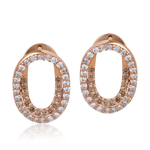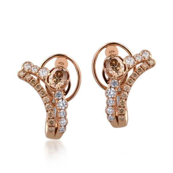Cercei din aur roz cu diamante maro de 0.41ct si diamante transparente de 0.8ct