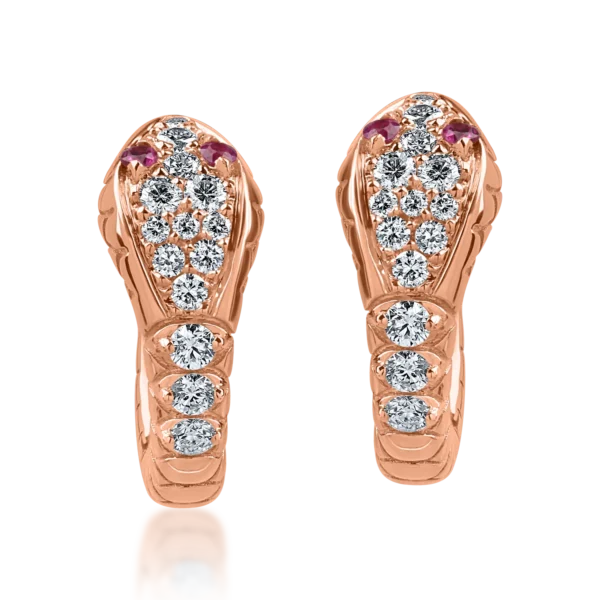 Cercei din aur roz cu rubine de 0.04ct si diamante de 0.26ct