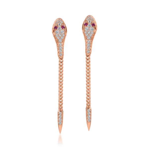 Cercei din aur roz cu rubine de 0.14ct si diamante de 1ct