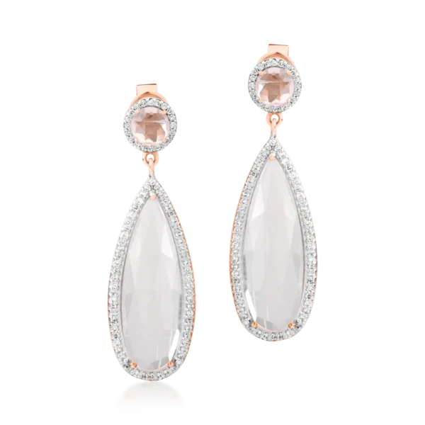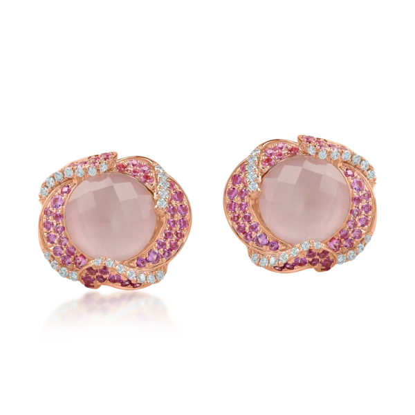 Cercei din aur roz cu quartz roz de 13.83ct si diamante de 0.567ct