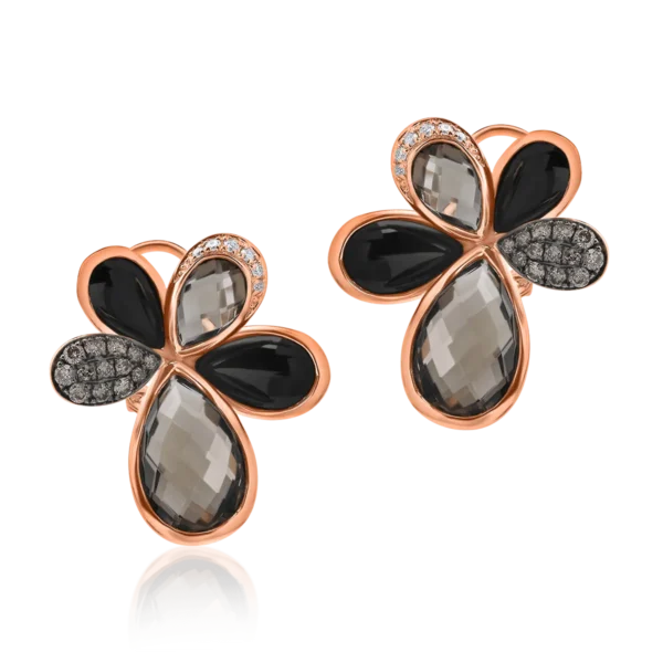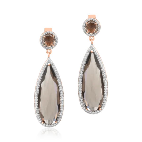 Cercei din aur roz cu quartz fumurii de 12.38ct si diamante de 0.585ct