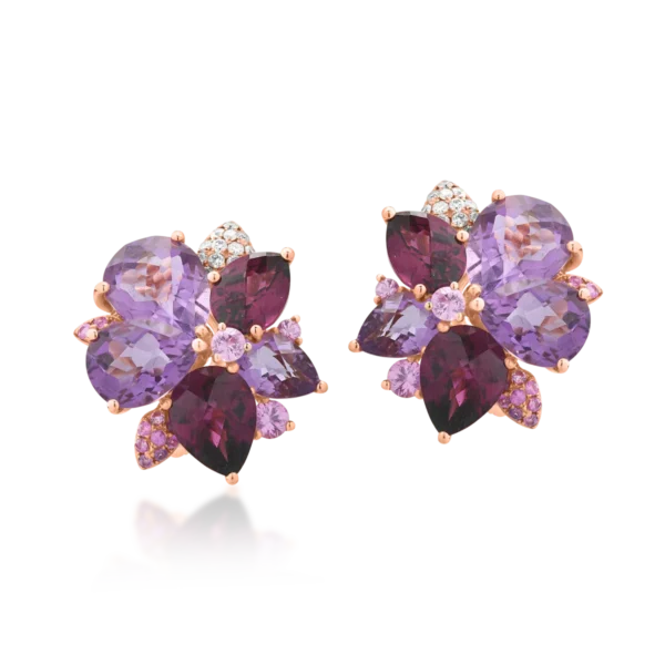 Cercei din aur roz cu pietre pretioase si semipretioase de 18.07ct