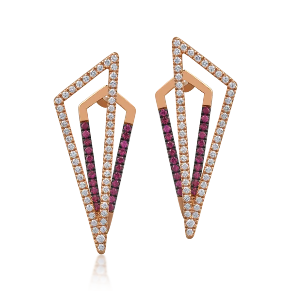 Cercei din aur roz cu rubine de 0.267ct si diamante de 0.211ct
