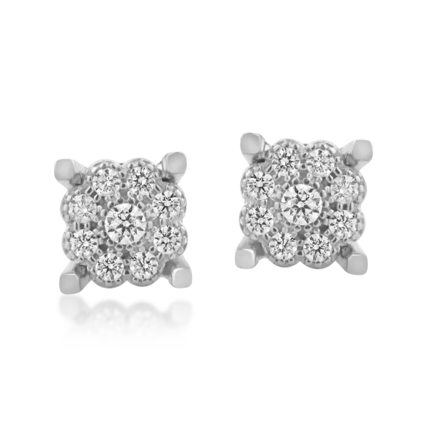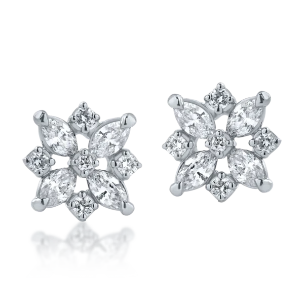 Cercei floare din aur alb cu diamante marquise si rotunde de 0.47ct