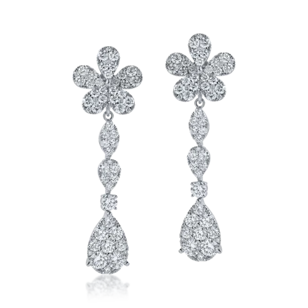 Cercei floare din aur alb cu diamante de 3.8ct