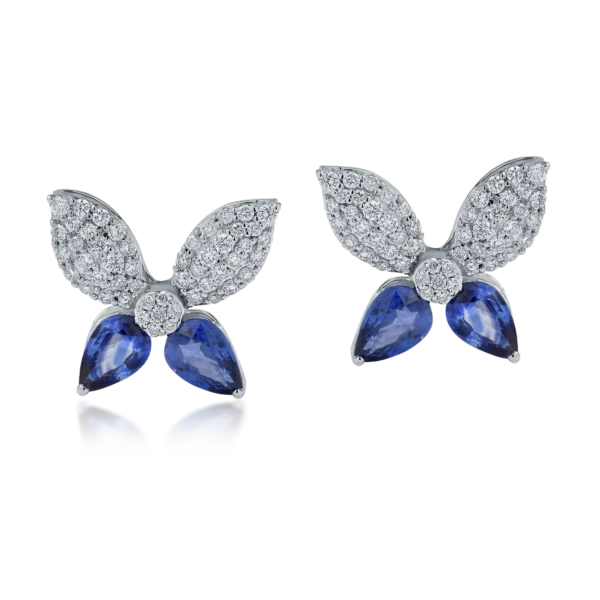Cercei floare din aur alb cu safire pear de 1.86ct si diamante de 0.6ct
