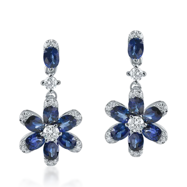 Cercei floare din aur alb cu safire ovale si diamante de 2ct