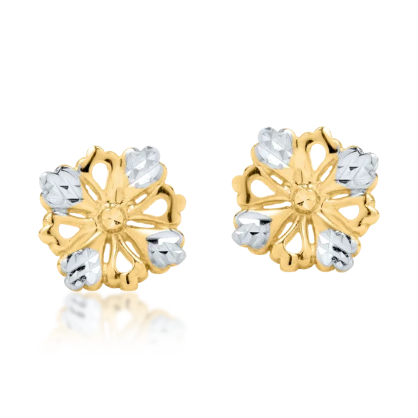 Cercei floare din aur alb-galben