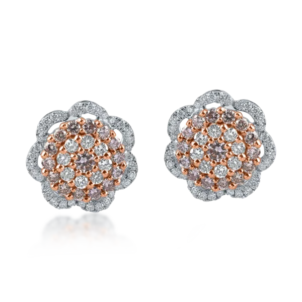 Cercei floare din aur alb-roz cu diamante de 0.8ct