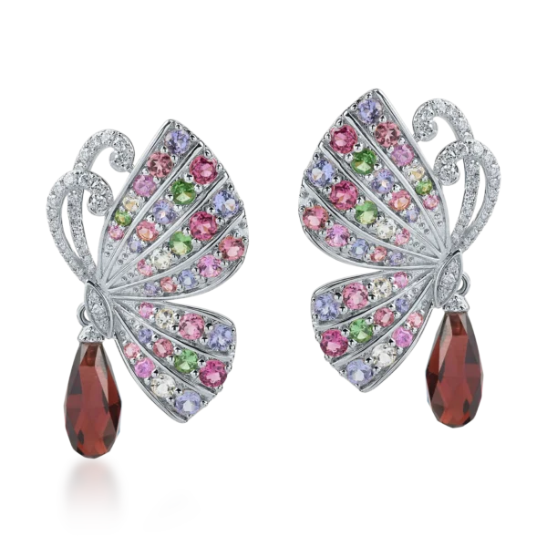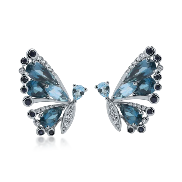 Cercei fluturi din aur alb cu pietre pretioase si semipretioase de 5.9ct