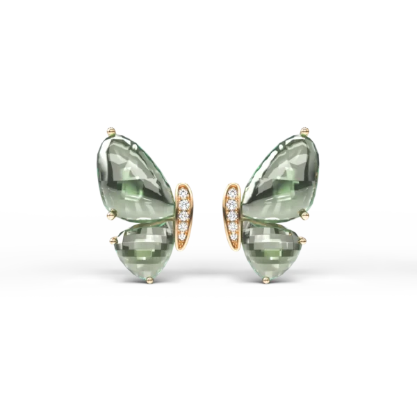 Cercei fluture din aur galben cu ametiste verzi de 8.5ct si diamante de 0.06ct