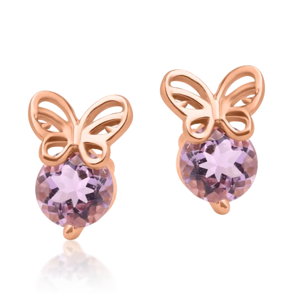 Cercei fluture din aur roz cu ametiste roz de 0.4ct pentru copii