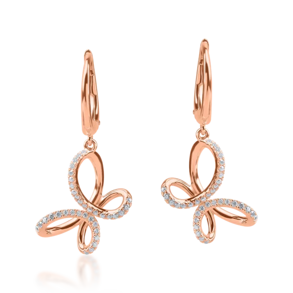 Cercei fluturi din aur roz cu diamante de 0.2ct