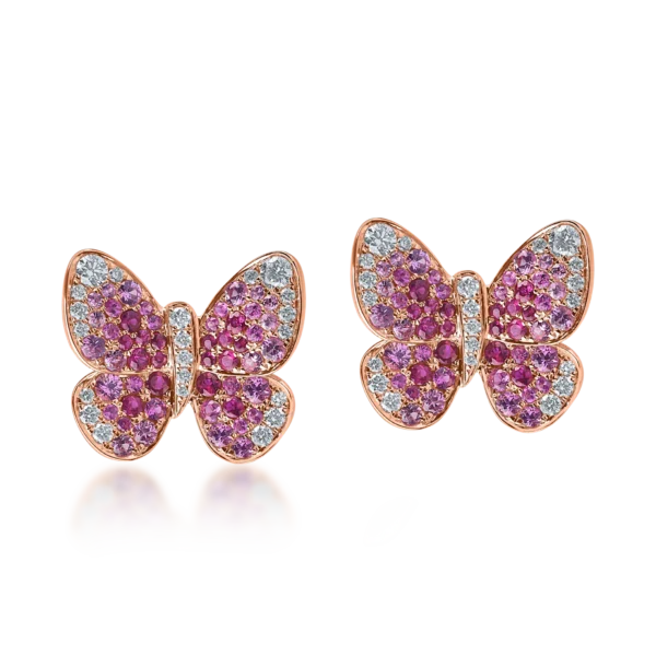 Cercei fluturi din aur roz cu pietre pretioase de 1.9ct