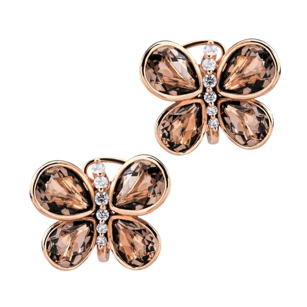 Cercei fluturi din aur roz cu quartz fumuriu pear de 7.865ct si diamante de 0.296ct