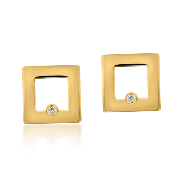 Cercei geometrici din aur galben cu diamante de 0.04ct