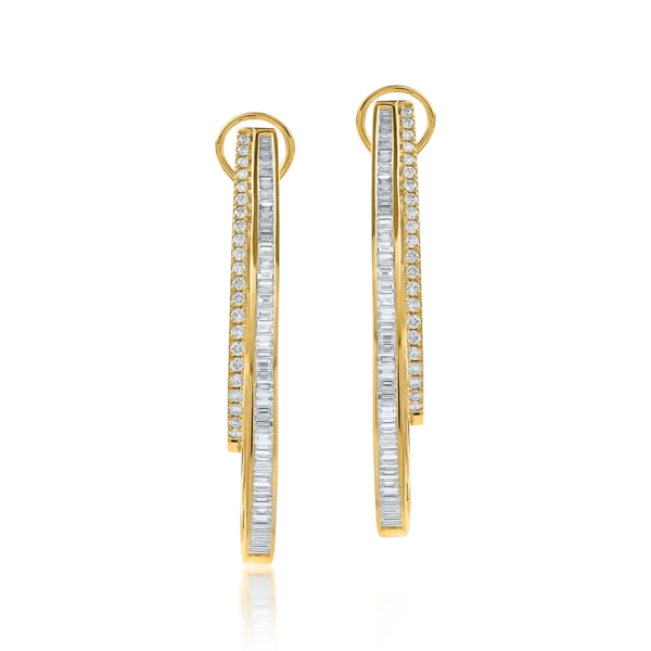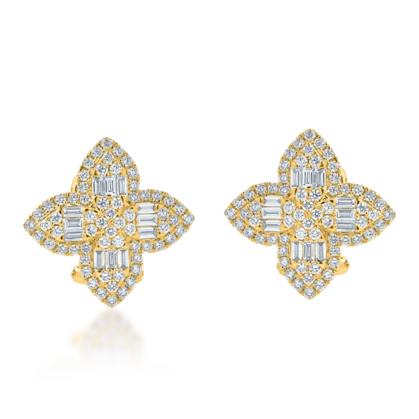 Cercei geometrici din aur galben cu diamante baguette si rotunde de 1.8ct