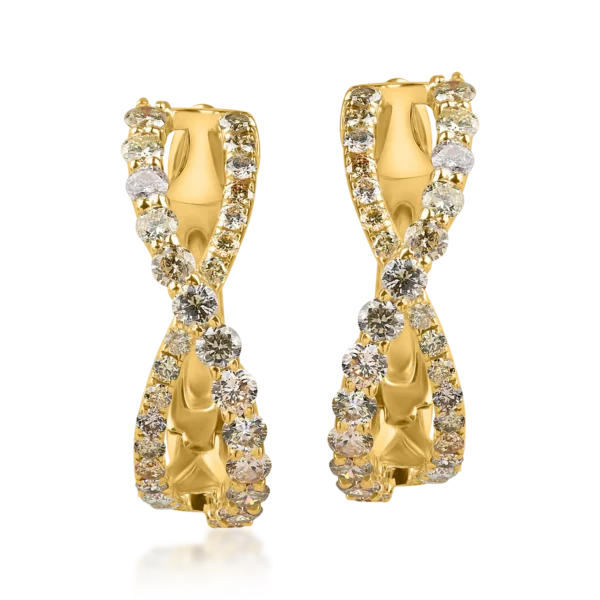 Cercei impletiti din aur galben cu diamante de 0.6ct