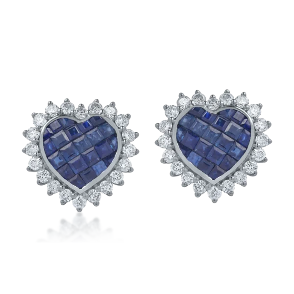 Cercei inima din aur alb cu safire square de 2.56ct si diamante de 1.15ct