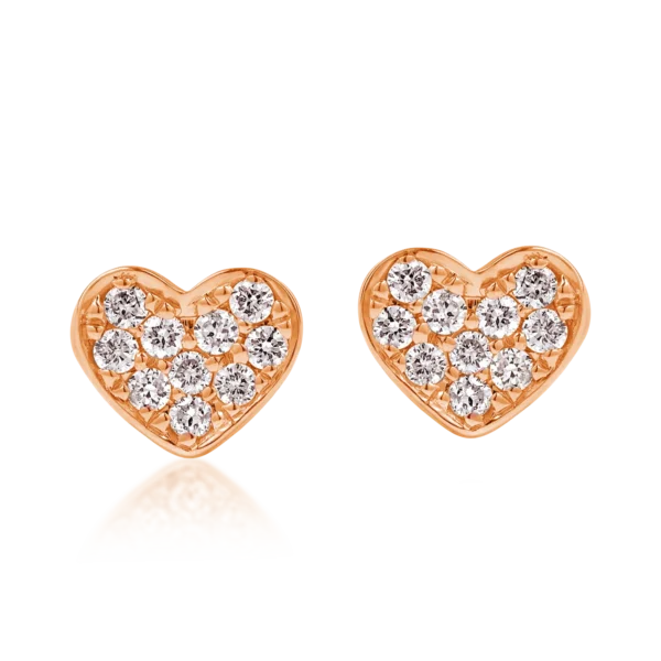 Cercei inimi din aur roz cu diamante de 0.22ct