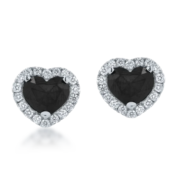 Cercei inimioare din aur alb cu diamante negre rose de 1.26ct si diamante incolore de 0.22ct