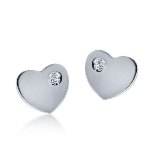 Cercei inimi din aur alb cu diamante de 0.22ct