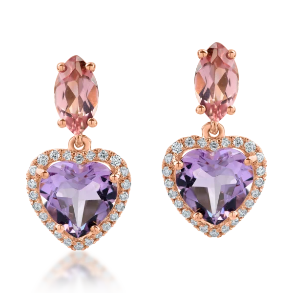 Cercei inimioare din aur roz cu pietre pretioase si semipretioase de 3.4ct