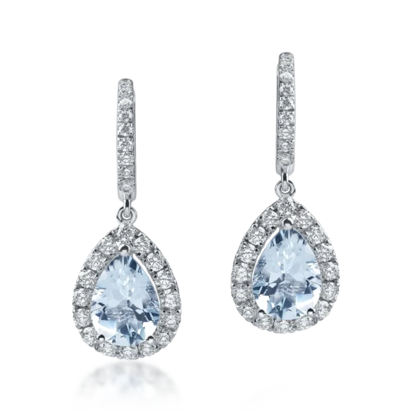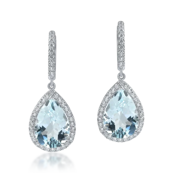 Cercei lacrima din aur alb cu acvamarine pear de 3.3ct si diamante de 1ct