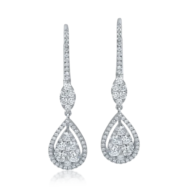 Cercei lacrima din aur alb cu diamante de 1.3ct